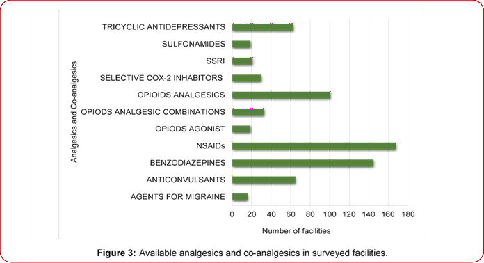 Figure 3: Available analgesics and co-analgesics in surveyed facilities.