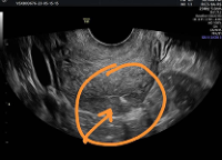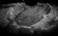 Figure 2. Shows a hyperechogenic area at the fundus that indi cated the area of perforation during the blind dilatation and curet tage that she underwent before presentation to our facility.