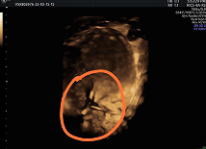 Figure 5. Shows 3D image of IUD at the lower uterine segment with evidence of perforation