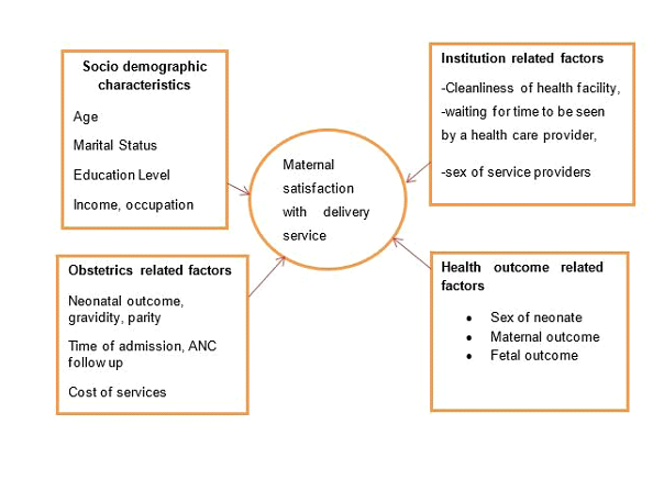 Figure 1. Conceptual Frame Work to assess maternal satisfaction with delivery service and associated factor among post-partum women at public hospital Addis Ababa Ethiopia 2024 G.C(1–4, 9, 15)