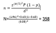 Z=level of confidence at 95% certainty (1.96) d= 5% marginal error